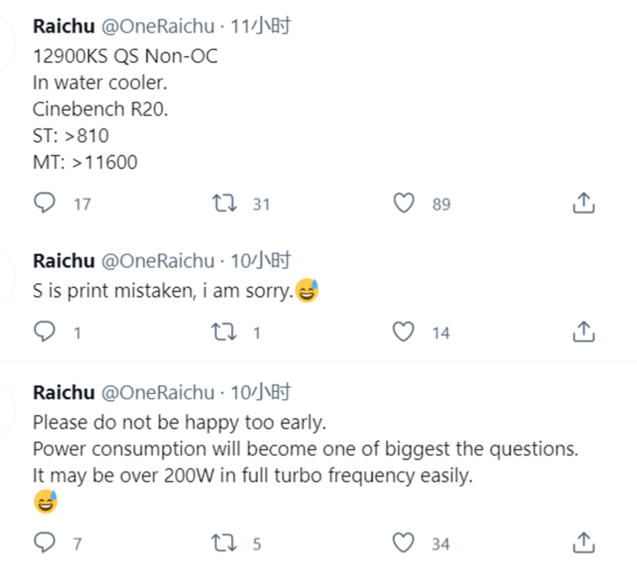目前十二代酷睿最大问题就是功耗问题,i9-12900K在最高睿频下的功耗可能会超过200W,它的PL2短时功耗标称值高达228W。
