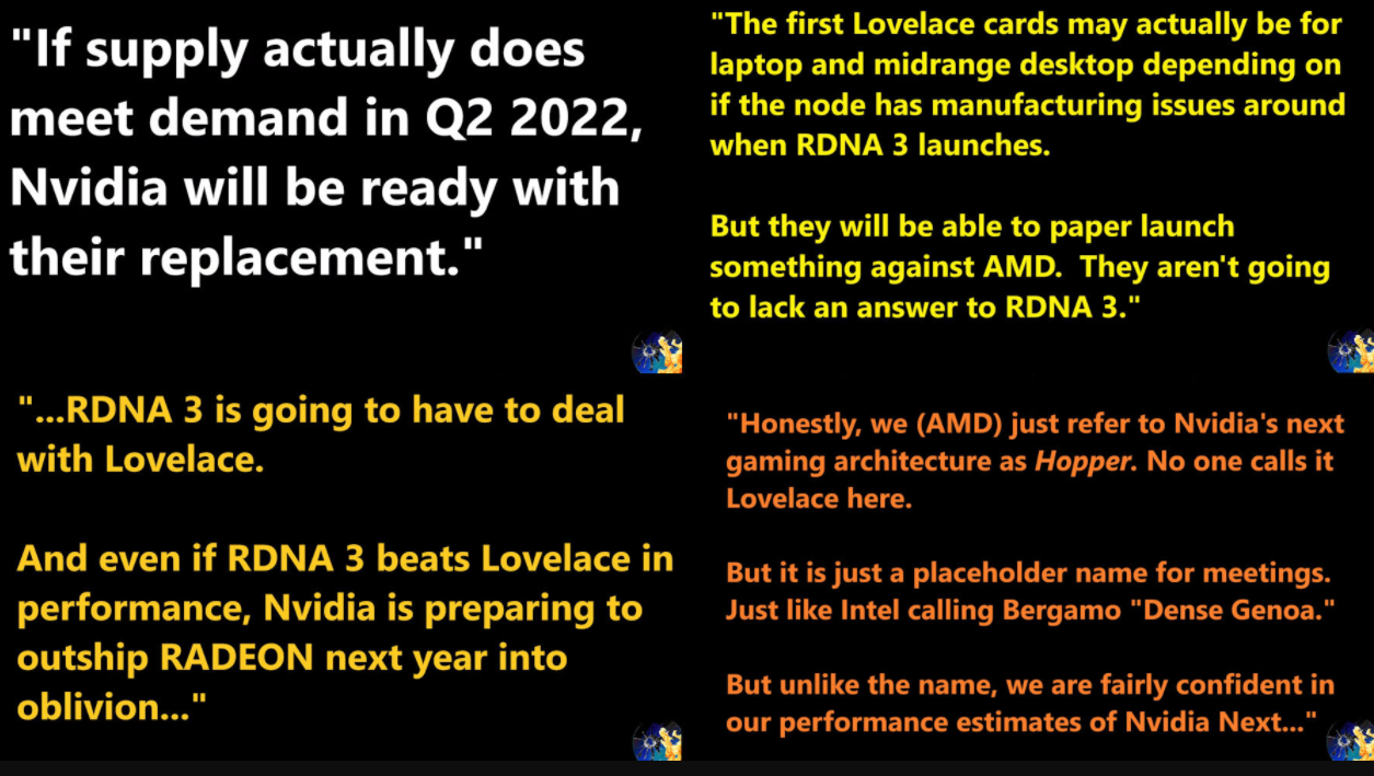 另外还有爆料者表示,代号“Lovela”的显卡不仅指桌面GPU,还可能包含汽车用芯片,属于Orin系列。他还表示NVIDIA试图通过降低生产成本,来和AMD RDNA 3架构的显卡进行竞争。