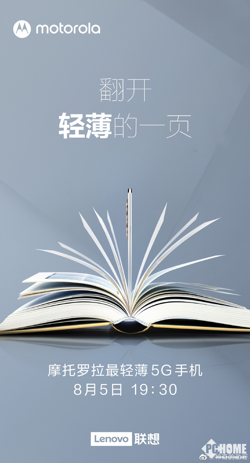 【PChome手机频道资讯报道】据联想中国区手机业务部总经理@神奇的劲哥的微博消息称,摩托罗拉史上最薄的5G手机即将在8月5日发布,两款新机型的设计超乎预期,惊艳绝伦。