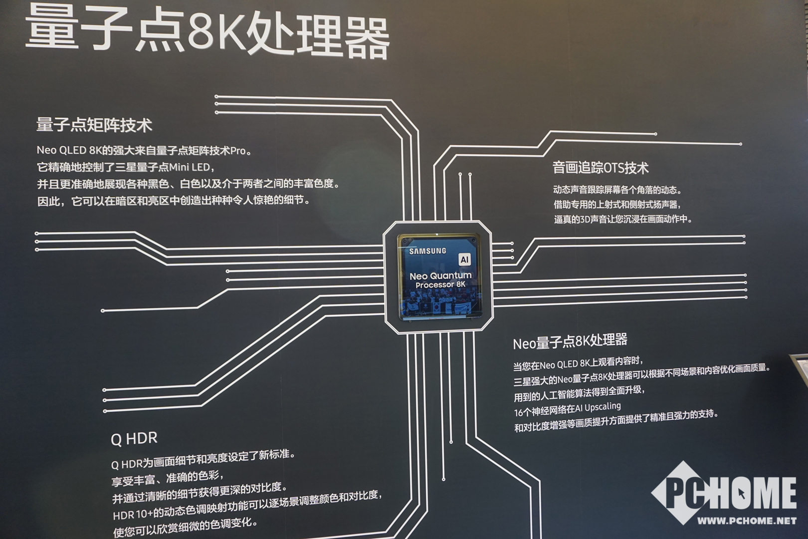 三星Neo QLED 8K电视首次亮相是在今年3月的AWE展会上,Neo QLED产品旨在‘用高端重新定义高端’”,这一系列产品包括Neo QLED 4K产品QN90A和QN85A,提供55英寸到85英寸等多个尺寸的选择。Neo QLED 8K产品QN900A包含85英寸和75英寸两种尺寸。三星Neo QLED采用量子点矩阵技术,所搭载的三星量子点Mini LED尺寸约为三星传统LED的四十分之一。电视屏幕可以填充更多的LED以支持超精密的光路控制,从而减少炫目感和光晕效应,并在明暗画面都可以呈现更多细节。今年,三星在量子点处理器技术上也进行了升级,强大的Neo量子点处理器可以根据不同场景和内容对图像进行优化,Neo QLED 8K利用 16个神经网络将低分辨率内容升级到接近8K影片的水平。
