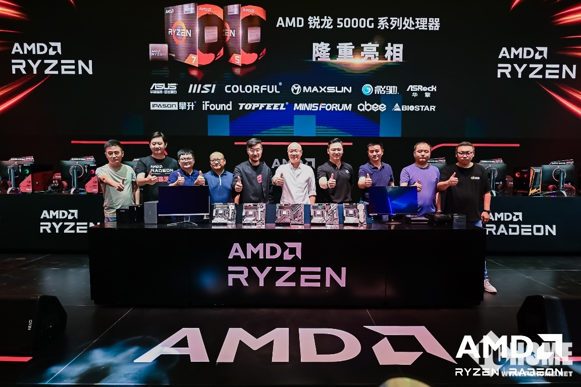 正如梅晨先生提到的,此次AMD锐龙5000G系列处理器的亮相仪式邀请到了多位硬件联盟合作伙伴的高层莅临,他们分别是:蜂翼智造(东莞)有限公司总经理&产品总监-朱维;广州商科信息科技有限公司总经理-孙武安;华硕电脑(上海)有限公司中国区开放平台总经理-俞元麟;华擎科技中国大陆地区销售总监-胡松麟;深圳市七彩虹禹贡科技发展有限公司董事长-万山;深圳市影驰科技有限责任公司中国区总经理-李翔;深圳市美高电子设备有限公司总经理&产品总监-姜瑞静;深圳华微电脑技术有限公司总经理-赵亚飞;微星科技股份有限公司中国区总经理-汪玉柏(以上排名不分先后)。有了这些联盟伙伴的鼎力相助,相信锐龙5000G系列处理器一定会在后续的市场上收获成功。