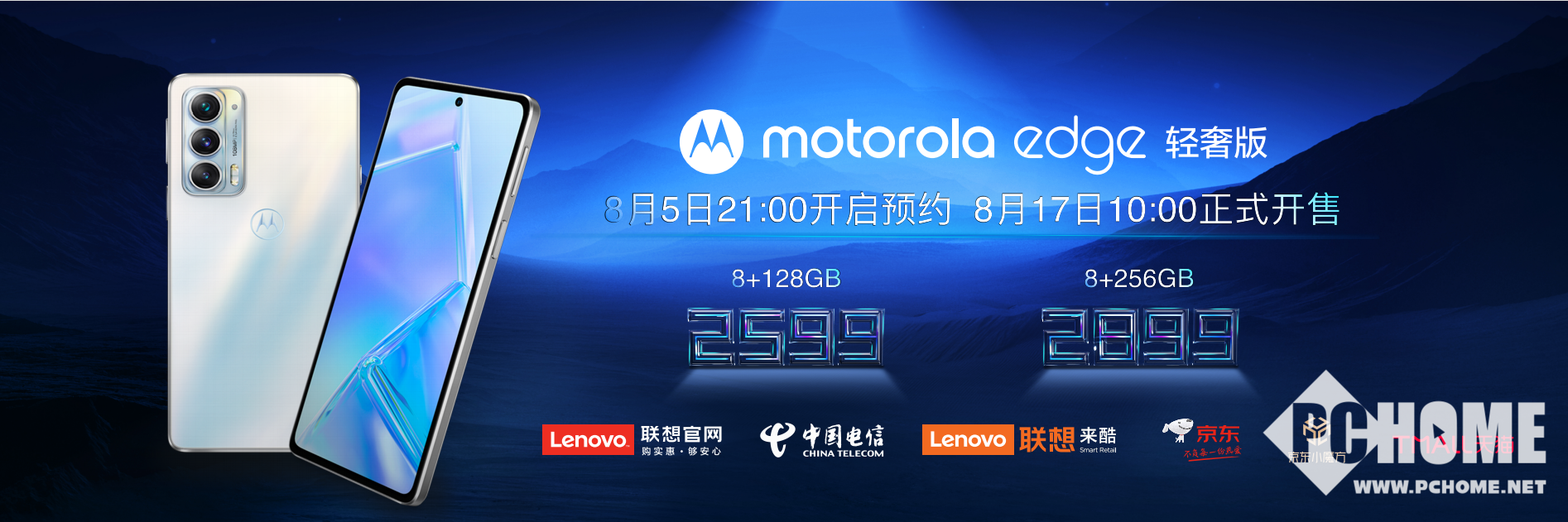 另一款摩托罗拉edge轻奢版作为中国电信与联想集团首款深度合作云手机产品,提供两个版本,分别是8+128GB版本售价2599元,8+256GB版本2899元。8月5日21时在各渠道开启预约,8月17日10时正式开售。