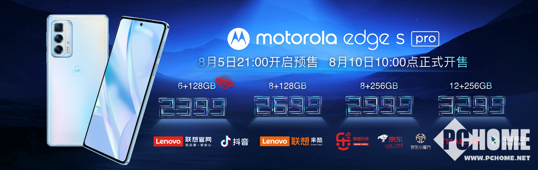 价格方面,摩托罗拉edge s pro 6+128GB版本2499元,首发特惠价2399元;8+128GB版本售价2699元;8+256GB版本手机2999元;12+256GB版本3299元。8月5日21时在各渠道开启预售,8月10日10时正式开售。