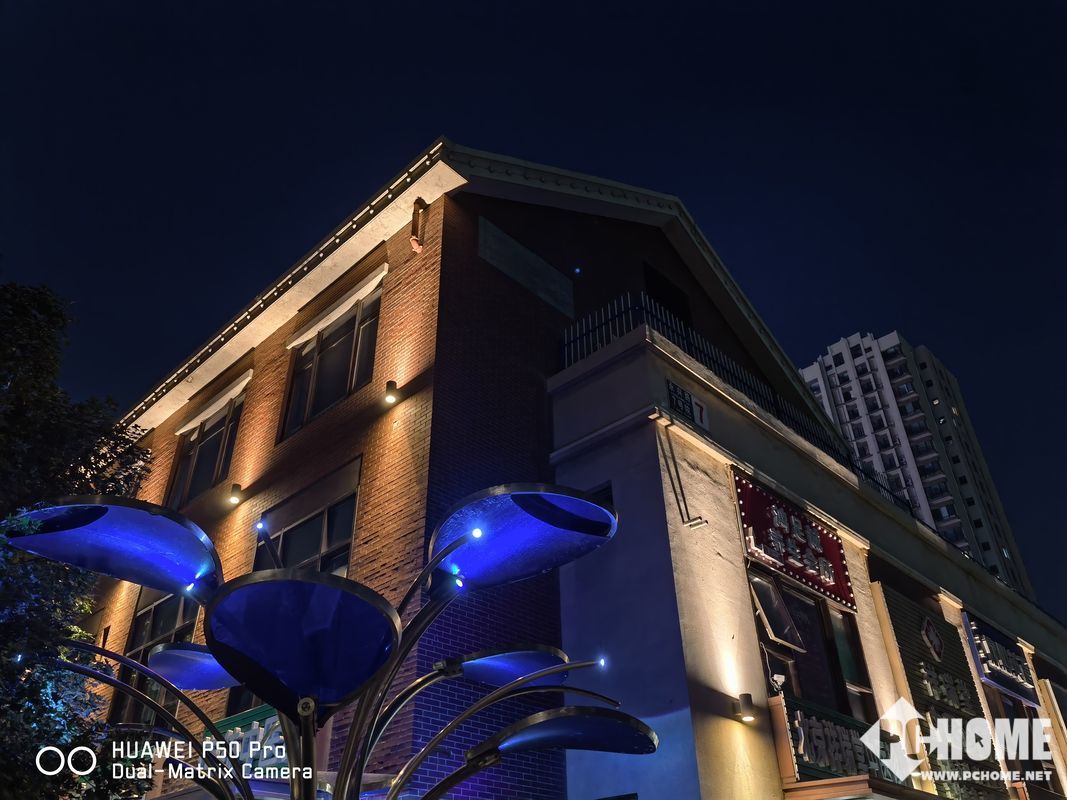 如果华为P50 Pro的白天样张还仅仅是华为P系列正常拍照水平的话,那么夜间样张,则让我们看到了华为P50 Pro真正的实力。华为P50 Pro的夜间样张不光延续了白天精准的白平衡优势,更重要的,还兼顾了暗部的曝光,使得整个照片的亮部曝光准确,同时暗部也没有噪点,因而看上去十分有档次感。