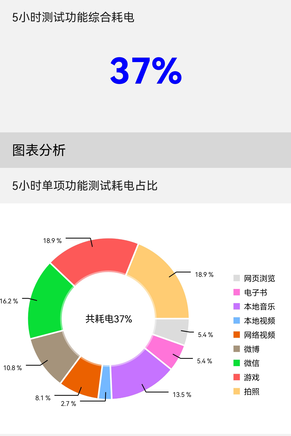 根据PChome实测,5小时的连续高强度使用后,华为P50 Pro总共耗电仅37%,还能剩下63%的电量。这也意味着,华为P50 Pro可以轻松应对大部分用户一天的高强度使用。