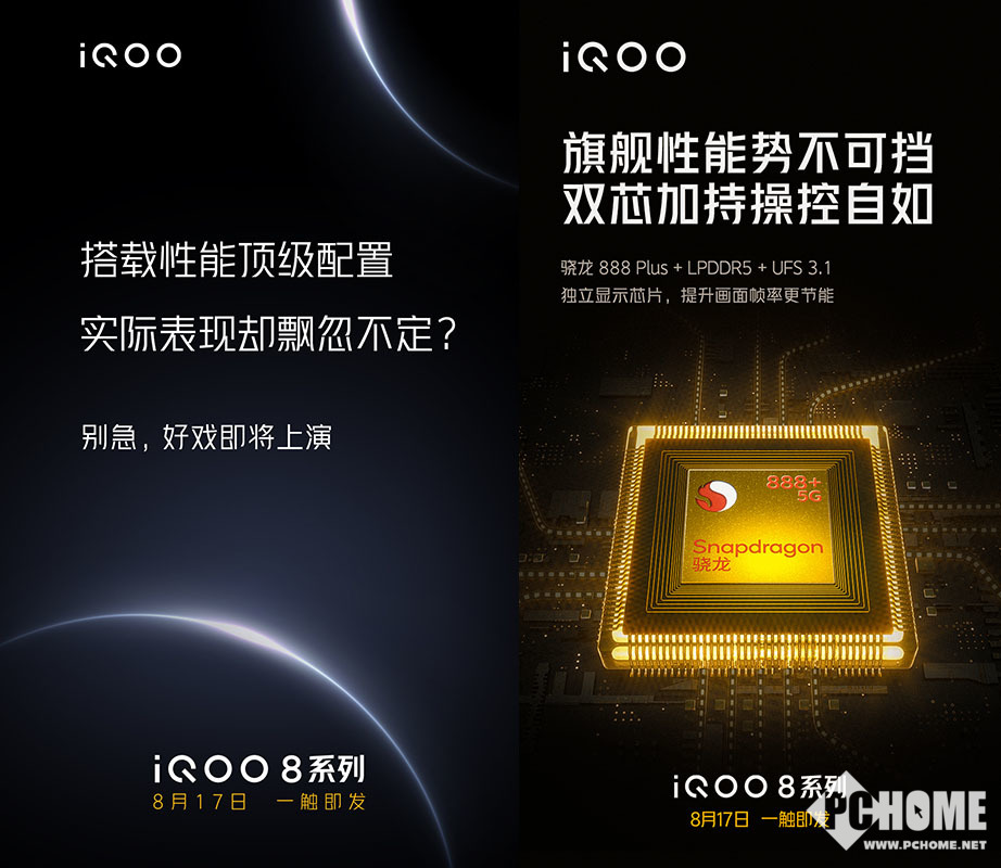 iQOO方面直接公开了iQOO 8的主要配置规格,骁龙888 Plus+LPDDR5+UFS 3.1的顶配规格,还配有专门的独立显示芯片,加强流畅性表现,再次捍卫了iQOO顶级性能体验的招牌。