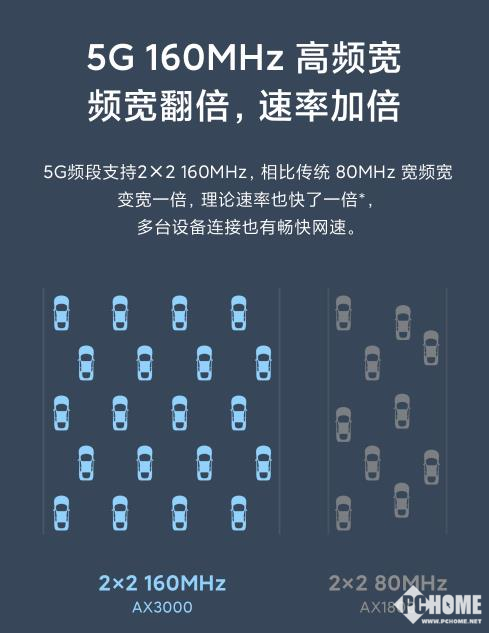 小米路由器AX3000采用新一代WiFi 6技术,双频并发无线速率高达2976Mbps,相比主流AC1200提升了155%。信号方面,这款路由器内置置四天线与四路独立信号放大器,2.4G频段采用两组PA+LNA;5G频段采用两组PA+LNA。PA(功率放大器)有效增强信号发射功率,发射的信号传输更远,穿墙更强。LNA(低噪声放大器)可以提高信号接收灵敏度,可以接收到更远更微弱的信号。