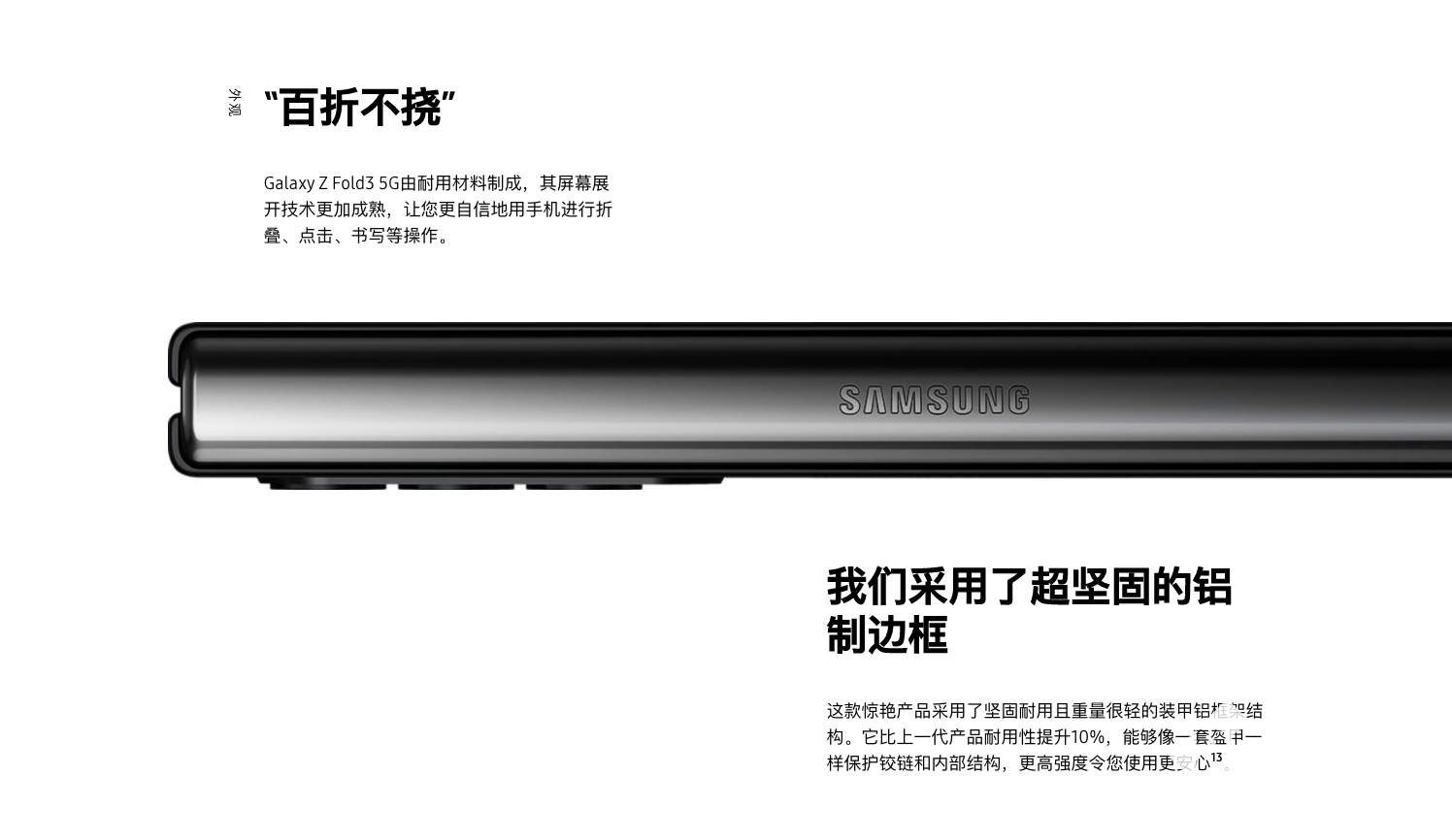 严苛的工艺标准让三星创造出了多款经久耐用且值得用户信赖的产品,并引领了折叠屏行业的发展。起初,三星在Galaxy Z Flip上引入了颇具颠覆性的隐形铰链,并且实现了将设备展开固定在多种角度使用的自适应分屏模式 ,为用户带来了创新的折叠屏体验。不仅如此,得益于防尘纤维技术的全面升级,铰链内部的刷毛比以前更短,有助于阻隔灰尘和其他颗粒物的侵入,进而保证设备的耐用性与用户体验。如今,三星Galaxy Z Fold3 5G和Galaxy Z Flip3 5G也同样历经严格的耐用性测试,并且经必维国际检验集团(Bureau Veritas)认证,两款产品均可承受高达20万次开合 。加上强劲的5nm处理器和5G 频段的强大兼容性,能够让用户获得由内而外一如既往的优质体验。