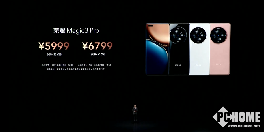 【PChome手机频道资讯报道】8月12日晚,荣耀正式举行新品发布会,会上正式推出三款手机新品,分别是荣耀Magic3、荣耀Magic3 Pro、荣耀Magic3 至臻版。三款新品不仅给用户带来了更前沿、更立体的极致体验,同时也为业界带来了新思路,完美诠释了荣耀Magic系列“科技理想主义”理念。据悉,荣耀Magic3系列新品将于8月20日10点08分正式开售。