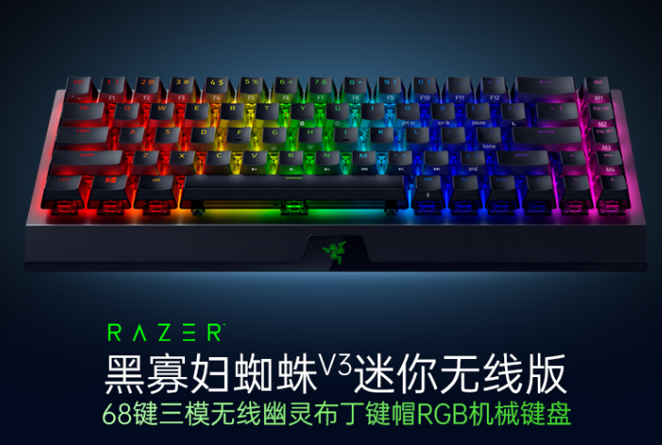 如果你想节约宿舍空间,又不想牺牲操控手感,也可以选择一款小尺寸的机械键盘。这款雷蛇黑寡妇蜘蛛V3键盘就是专门为寝室党而设计。这款键盘采用的是独特的68键设计,相比常见的87键或108键设计,键盘尺寸更加小巧,同时键盘重量只有800g,这样的身形放入包中也不在话下。