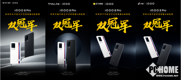 2021年8月26日,随着iQOO 8 Pro的正式开售,未来电竞旗舰iQOO 8系列创下iQOO旗舰系列首销日销量及销售额历史新高。同时,iQOO 8 Pro斩获京东手机全价位段销量销售额双冠军、天猫手机全价位段销量销售额双冠军、苏宁手机全价位段销量销售额双冠军、抖音手机类目销量销售额双冠军;iQOO 8斩获京东手机、第三方平台全价位段销量销售额双冠军、天猫手机全价位段销量销售额双冠军、苏宁手机全价位段销量销售额双冠军等桂冠,这一成绩开创iQOO品牌旗舰系列历史新高的同时,也具有里程碑意义。