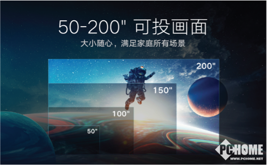 峰米R1可投尺寸为50-200英寸,距墙面1米摆放即可投影150英寸画面