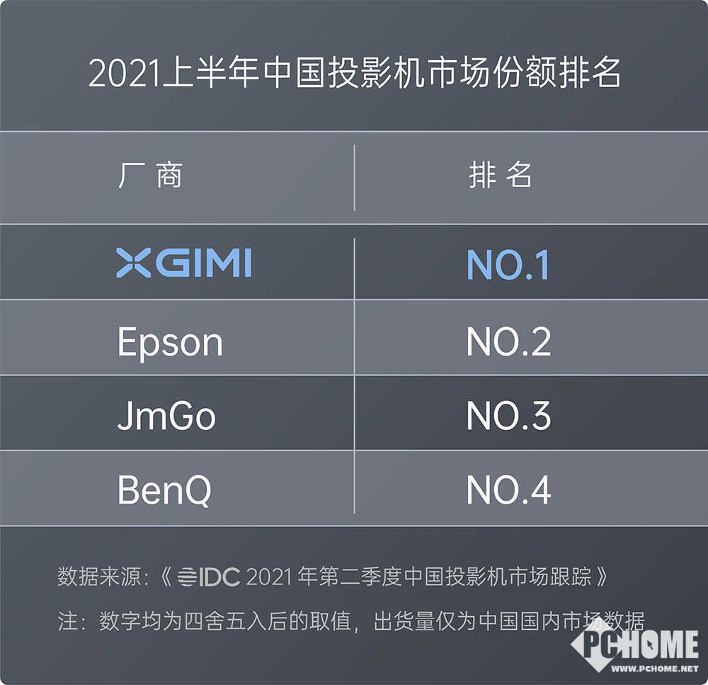 IDC公布了《IDC 2021年第二季度中国投影机市场跟踪报告》,数据显示,2021年上半年中国投影机市场总出货量227万台,同比增长32.4%。极米科技以大幅领先优势稳居出货量和销售额双第一。