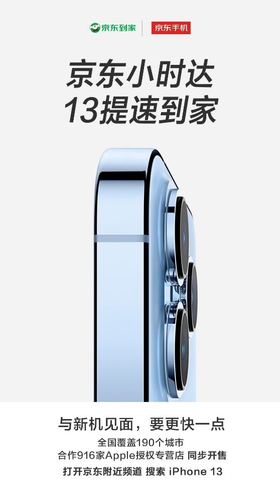 随着互联网的高速发展,大家购买手机的方式也越来越多了,不用在线下排队,也能像点外卖一样马上拿到新手机。据了解,全国的京东之家、京东专卖店、Apple授权经销商门店以及位于重庆、合肥的京东电器超级体验店和位于西安的京东MALL同步开售iPhone 13系列。同时,在京东到家或京东App上选择附近的京东之家、京东专卖店、Apple授权经销商门店一键下单后,还可享受加速的“小时达”体验,感受第一时间iPhone新机现货到手的快乐。