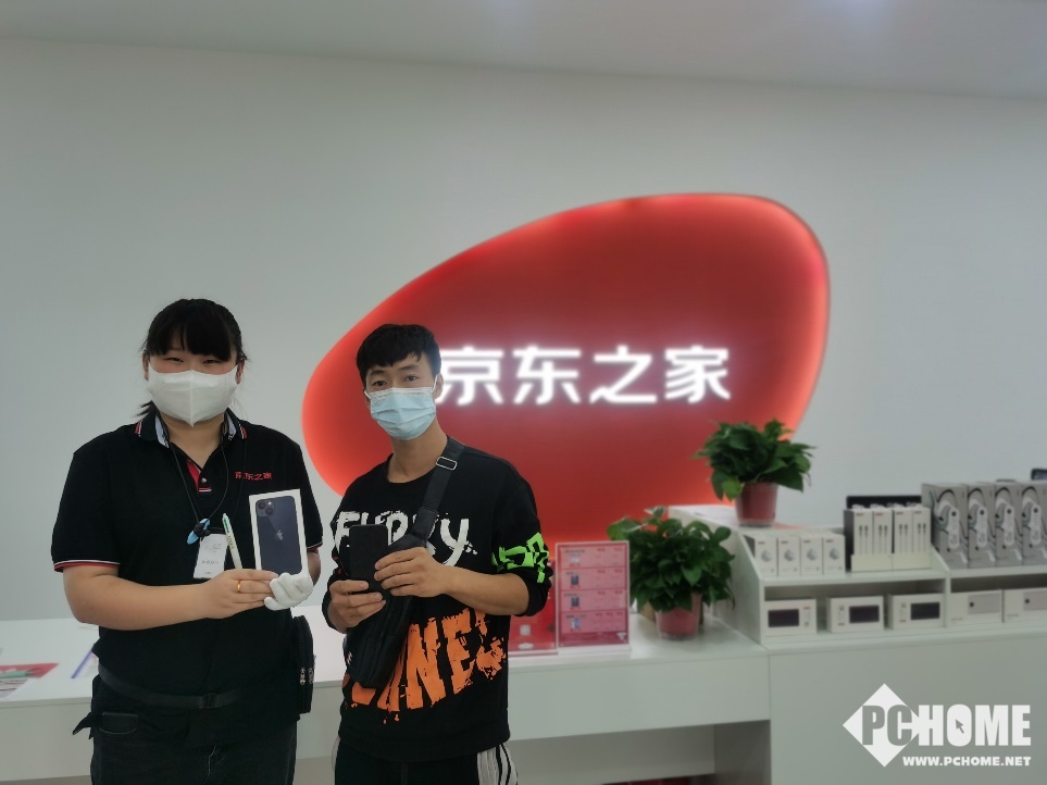 很多消费者为了第一时间体验新机,一早就来到了附近的京东之家和京东专卖店,刚刚开门就第一时间抢到心意的iPhone 13系列产品。