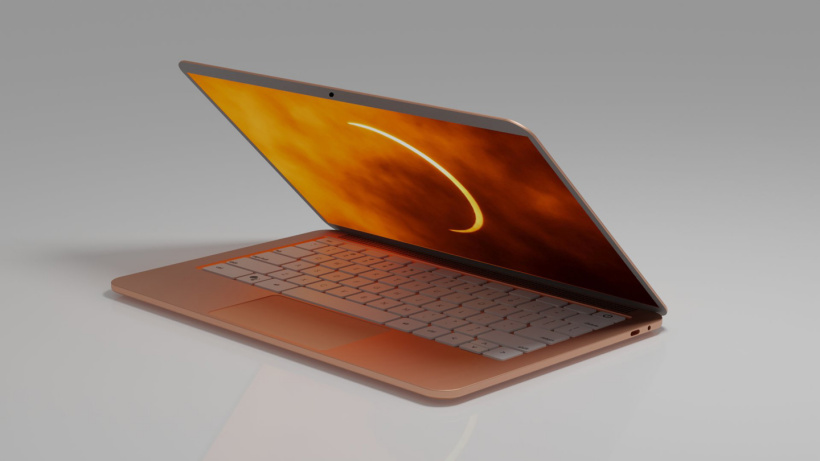 这款笔记本将使用铝合金外壳,并且具有多彩的配色,屏幕为13.3英寸。将采用Tensor 芯片。从渲染图可以看出,产品左右各具备一个Type-C接口,预计会支持PD充电,同时还有3.5mm耳机孔。键盘采用了标准布局,同时还具备触摸板、前置摄像头,开机键则位于键盘的右上角。