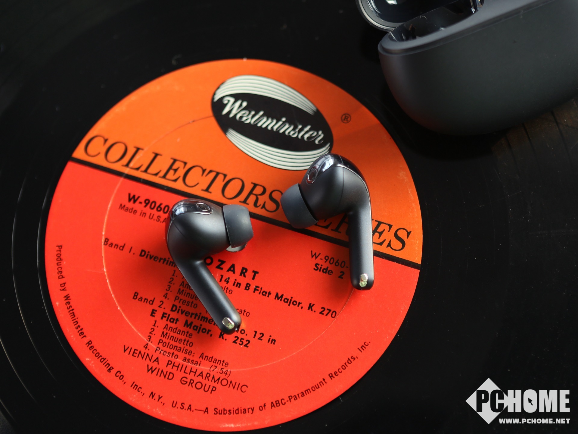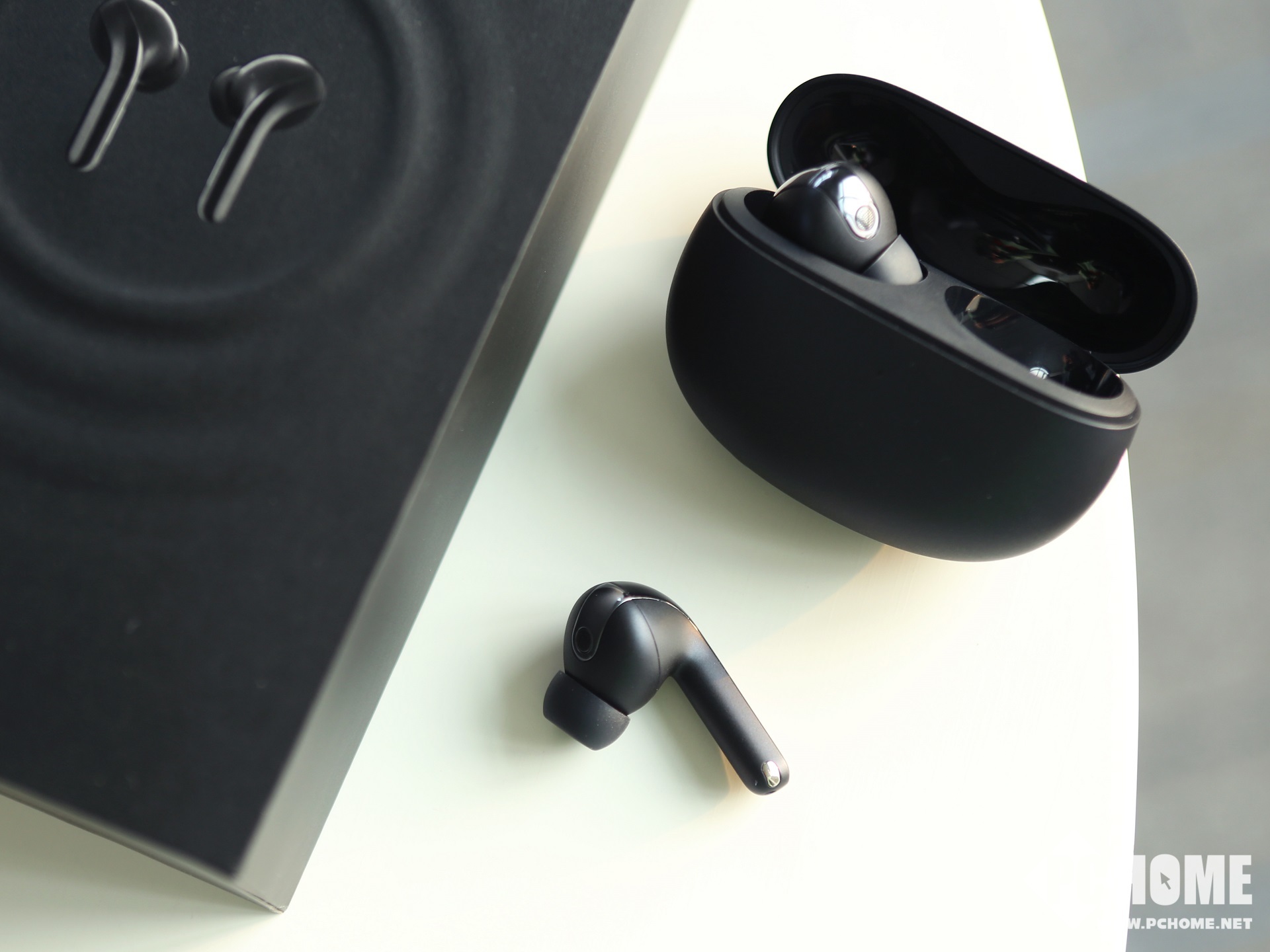 耳机采用了磨砂金属质感的喷漆背壳,更加耐磨,同样不易沾留指纹,流线型的设计让耳机戴在耳朵上时还是比较美观的。耳机采用压感操作,压感区域在耳机柄外侧,触控上还是比较灵敏的,按一下压感区就能暂停音乐播放,长按压感区2秒钟就能切换降噪开/关或者是通透模式。