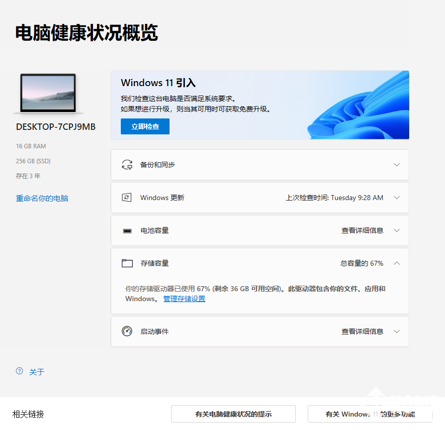 当然,如果你不知道自己的电脑是否符合升级要求,或者觉得去官网查看资料过于烦琐,可以下载电脑健康状况检查软件,一键查看自己的电脑是否符合系统要求。