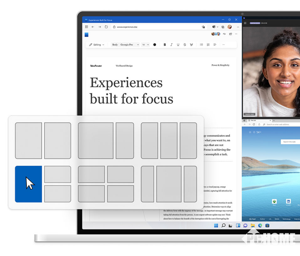 2、全新的贴靠布局方式让生产力最大化。随着PC行业朝纵深化发展,多任务多线程的工作方式已经成为一个明显趋势。Windows 11操作系统采用全新的贴靠布局方式,实现多任务快速分屏,让桌面窗口布局显得更加简洁大方、井井有条,有助于用户提升注意力,最大限度地提高工作效率。