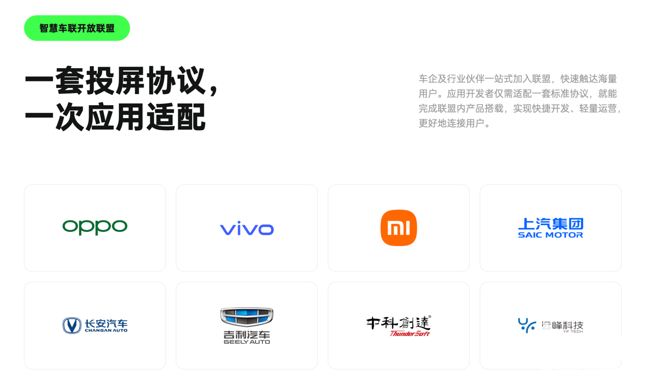 车机互融当前是大势所趋。通过数字车钥匙、车管家、Car+车联等应用能力,OPPO能够与开发者和合作伙伴共同打造智能高效的座舱新体验,为用户提供全链路无缝出行体验。加入智慧车联开放联盟,应用开发者仅需适配一套标准协议,就能完成联盟内产品搭载,实现快捷开发、轻量运营,更好地连接用户。手机与汽车的结合是科技品牌的一条重要赛道,此前OPPO就曾推出过手机车钥匙功能,并与传统汽车企业进行深入战略合作,联合探索“SOA应用服务、生态域融合、车机互联”等领域的研究和应用,携手打造共赢共享的未来智能汽车生态。