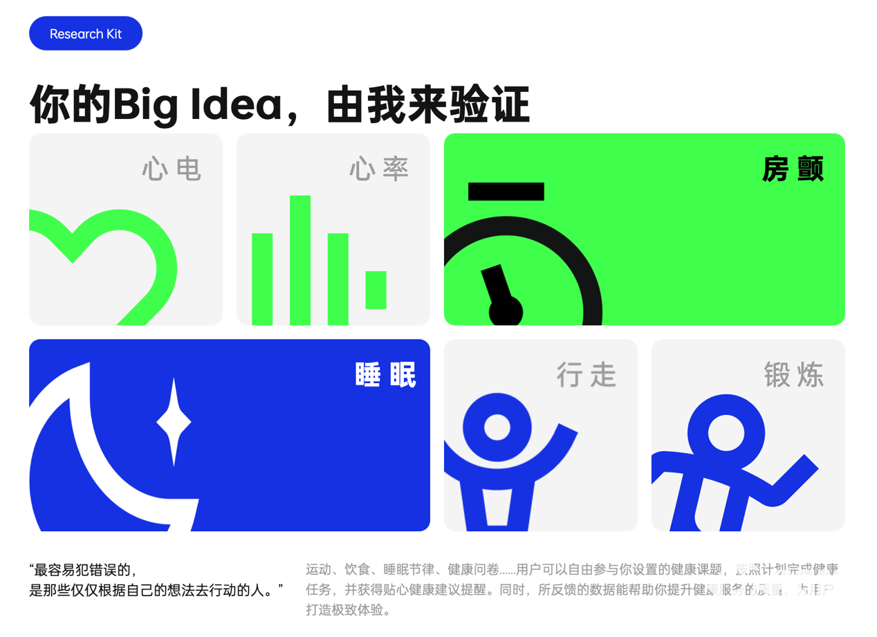 在健康生态的构建上,OPPO可提供坚实的数据基础及前沿的健康技术,能有效拓宽开发者的健康数据维度,为其机器学习和深度学习提供算法训练和验证平台。通过工具套件Research kit, 用户可以自由参与开发者设置的健康课题,并获得建议提醒。同时,反馈的数据将帮助开发者提升健康服务质量。