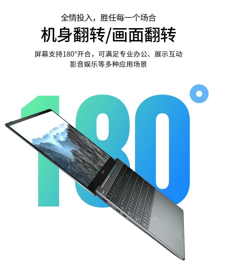 攀升MaxBook P2相比于其他的笔记本来说,最大的产品特点就是屏幕支持180°开合,这也让它拥有更加宽泛的使用场景。比如你在地铁或是公交上,将笔记本放在腿上就能轻松处理工作;外出会见客户或者召开会议,更大的开合角度更便于和他人分享屏幕。