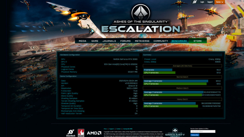 Intel Core i5-12600K处理器与RTX 3080搭配进行测试,在《奇点灰烬》中的帧数已经达到了110帧,在Crazy_1080p预设的基准测试项目中得分为10800分。相比于上代的i5-11600K高出10.2%,超过了AMD Ryzen 5 5600X。