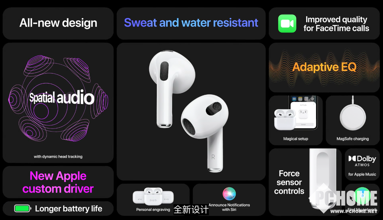 【PChome智能频道资讯报道】2021年10月19日凌晨,苹果如约举行新品发布会,此次发布会重点推出了全新的Mac笔记本产品,同时还带来了传闻已久的AirPods第三代(下文简称AirPods 3)。相比MacBook的王炸更新,AirPods 3显得常规很多,主要更新了外观和音质体验,国行版售价为1399元。