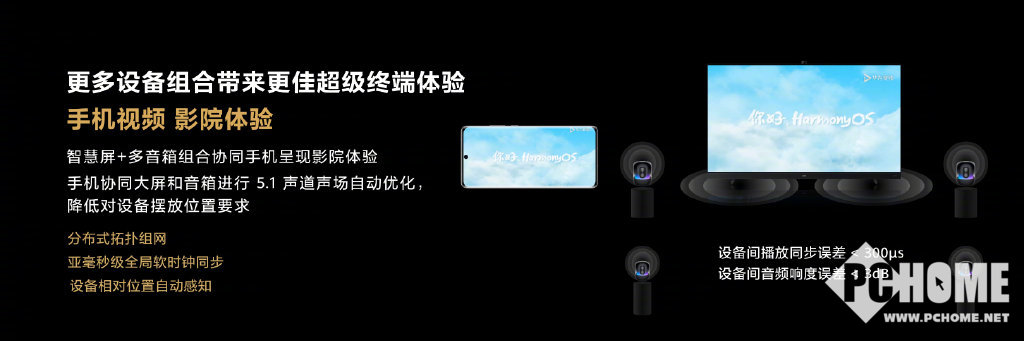 分布式技术一直是HarmonyOS的能力核心,能够让多个设备自由组合,在系统层融合成一个超级终端。每个设备都能成为互相的功能模块,实现能力互助,资源共享。本次发布的HarmonyOS 3开发者预览版带来创新的异构组网技术,让分布式能力支撑更多设备、更佳性能,打造更坚固的超级终端底座。比如,手机、智慧屏、4台音箱可以组合成6个设备的超级终端,让手机视频也可以享受超大屏幕和5.1声道影院级体验;手机、平板、PC组合带来升级版多屏协同,三屏协作提升办公效率。