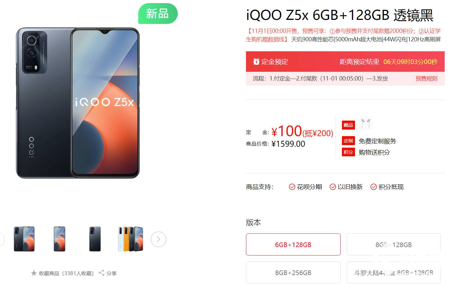 凡是预定iQOO Z5x新品的用户,均可以享受6期免息、赠送iQOO入耳式耳机、PLUS会员加赠iQOO无线运动耳机等好礼权益。新品将于11月1日正式开售,起售价为仅1349元起。