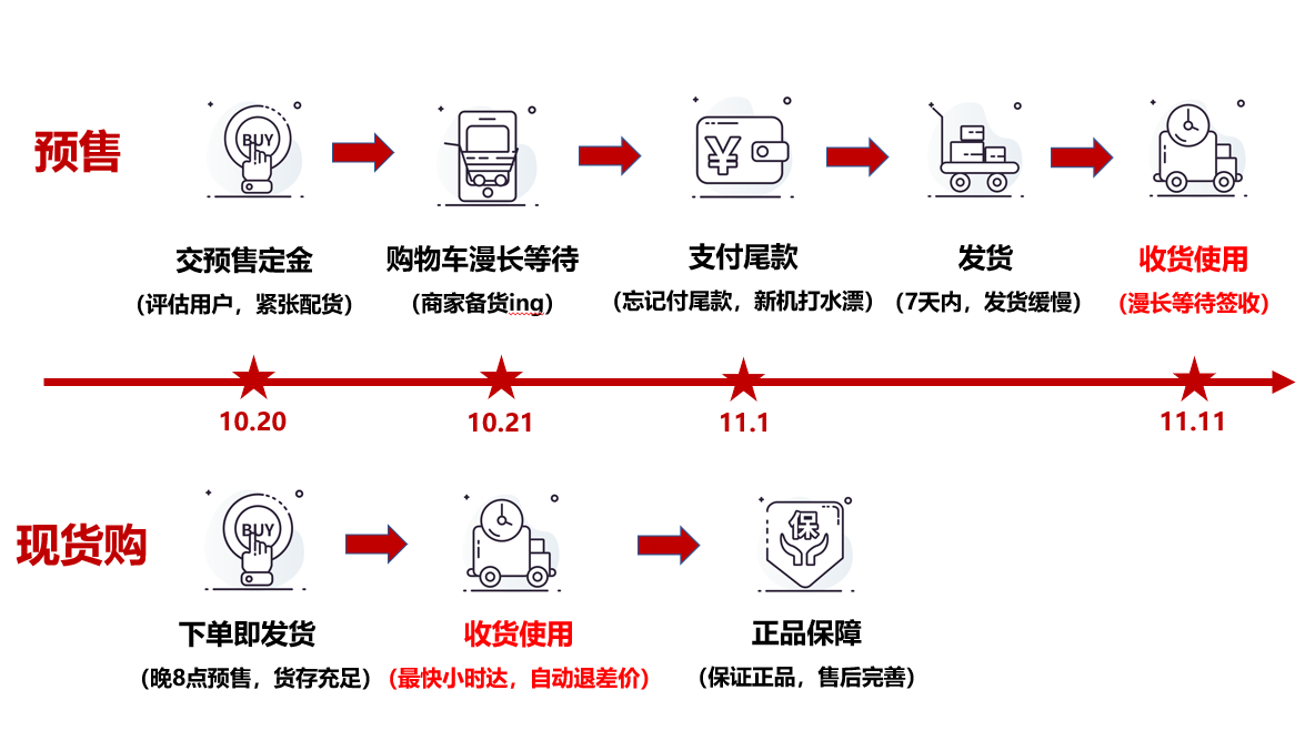 在被预售裹挟的无奈下,一众网友除了苦苦等待别无他法。更让大家心塞的是,除了等待预售,有些商品因为缺货,在支付了尾款后可能还要进入遥遥无期的等待发货期。据一位网友爆料,最近他趁着11.11换新手机,苦苦等了3天商家还不发货,询问客服后得到的回答只有一句:“不好意思,目前您所在地没有货源,我们正在为您紧急调配”。对于这样官方的回答,网友表示早已屡见不鲜,但也因此对于商家的印象大打折扣,表示以后不会再从这个渠道换新手机了。