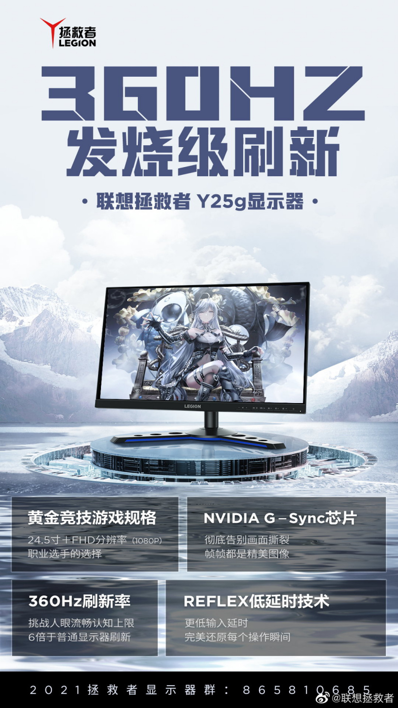 联想拯救者品牌将于明天8点举办秋季新品发布会,届时将有多款游戏电脑新品和广大玩家见面。今日,联想官宣了拯救者Y25g电竞显示器,屏幕尺寸为24.5英寸,分辨率为1920×1080,最高支持360Hz刷新率,搭载NVIDIA G-Sync芯片,支持Reflex低延迟技术。