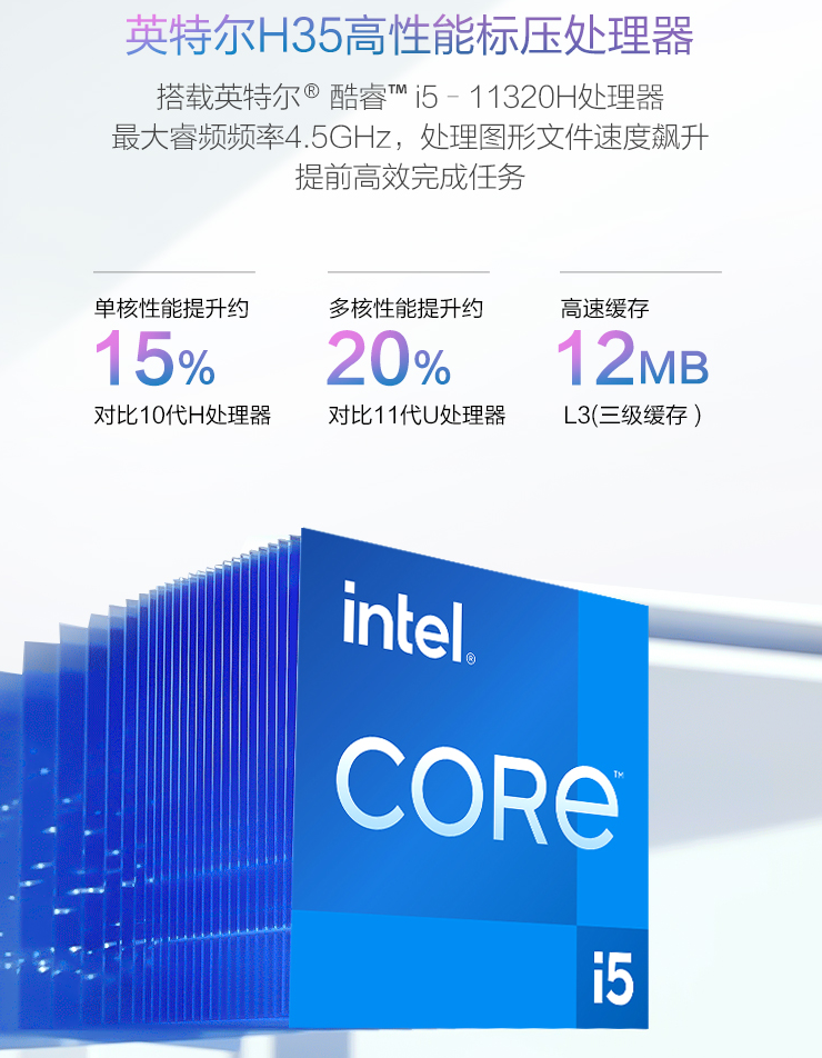 配置方面,一格IGER Pro 16搭载Intel十一代酷睿Tiger Lake H35处理器——i5–11320H,该处理器基于10nm制程打造,最大睿频为4.5GHz,集成拥有96个EU的锐炬Xe核显。同时, 搭载16GB DDR4-3200双通道内存、512GB NVMe 固态硬盘,还预留了一个M.2 2280硬盘位。