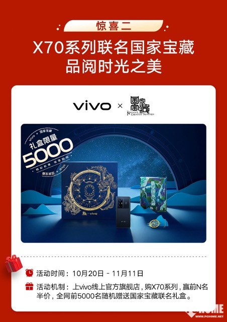 正值双11期间,vivo X70系列联名央视CCTV《国家宝藏》联合打造了典藏礼盒,以乾隆时期的稀世珍宝“金嵌珍珠天球仪“为设计灵感,彰显了艺术与科学高度结合的创作美感。想要入手vivo X70系列可前往vivo线上官方旗舰店参与活动,前N名抢到下单可享半价购机权益、全网前5000名随机赠送国家宝藏联名礼盒,可以蹲点抢购。