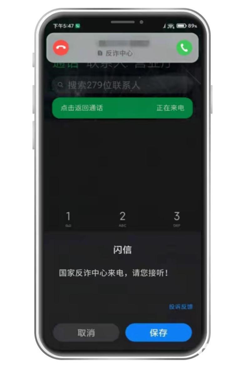 当市民接到国家反诈中心专员的电话时,手机屏幕上会收到弹显信息,提高电话接通率,确保宣传工作顺利进行!