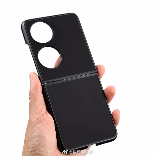 根据网络上的曝光图来看,华为 P50 Pocket将采用类似三星 Galaxy Z Flip系列的上下翻折设计,背部有两个圆形开孔,类似华为 P50,手机右上边框是音量以及电源按钮开槽。