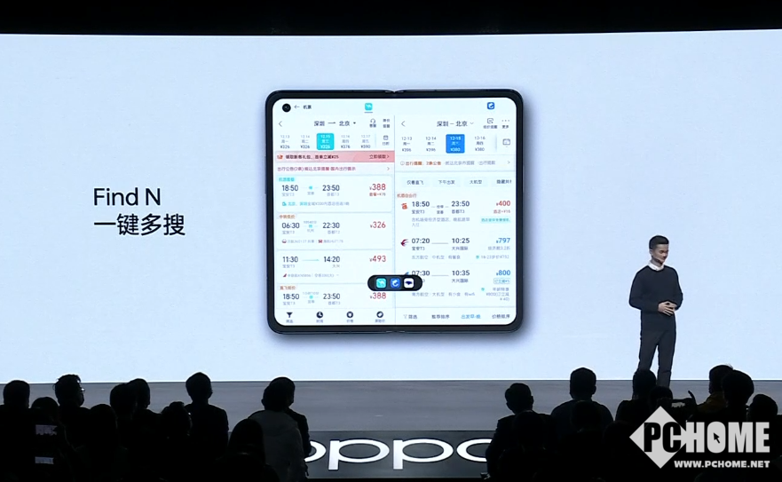 针对多应用的使用方式,OPPO专门开发了一键多搜功能,搜索机票、商品、酒店信息等,均能在多个应用中同步搜索,并为用户提供直观的对比信息,部分应用还能提供三应用的对比功能。