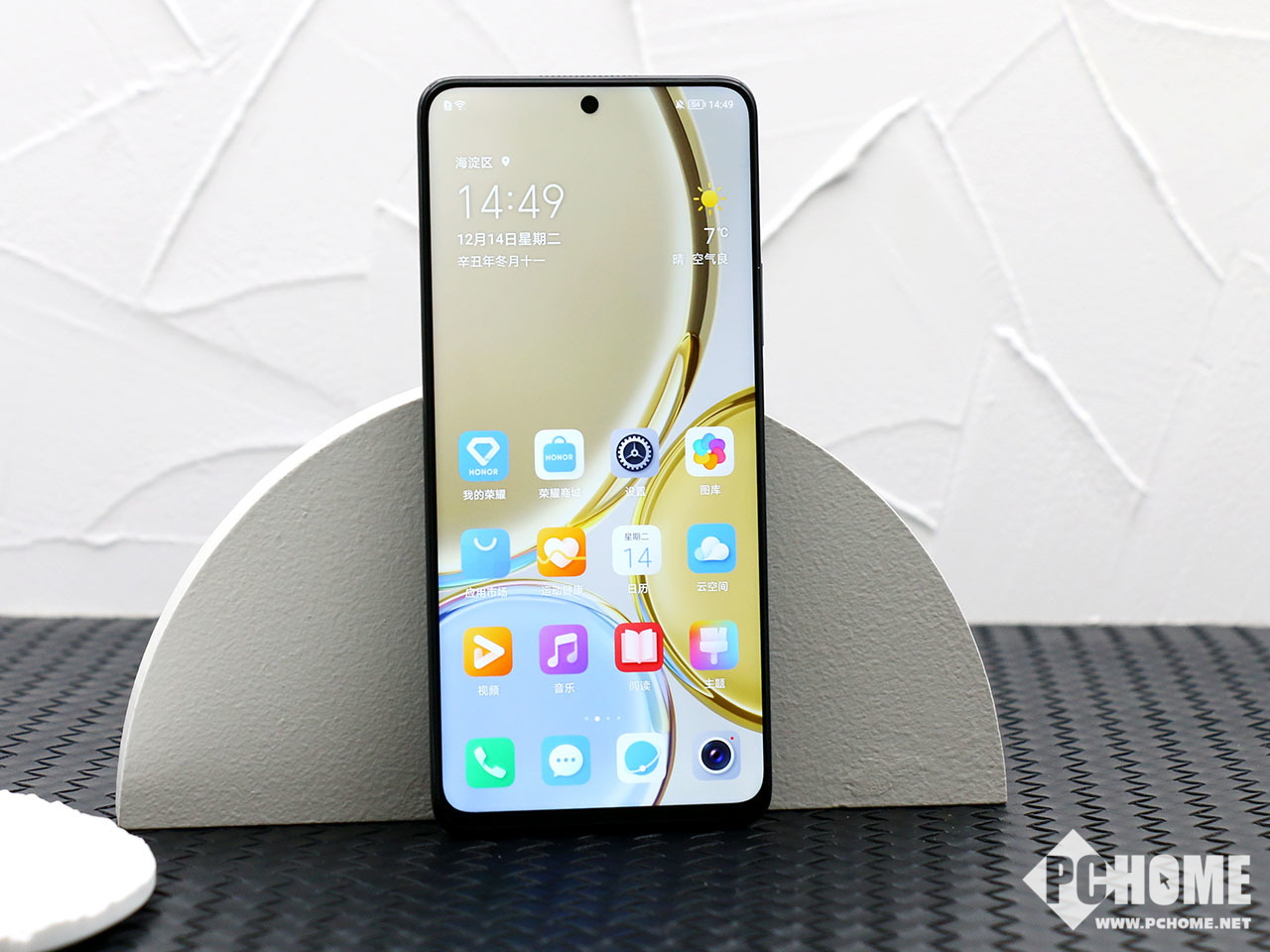 荣耀X30采用侧面实体指纹设计,凹槽式的设计使其辨识度极高,能够轻松实现盲操使用。顶部听筒设计完全不占用正面空间,使手机的屏幕视觉效果更为出色。