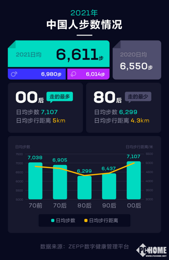 近日,华米科技发布了《2021年中国人健康状况报告》,报告由华米科技ZEPP数字健康管理平台对公司旗下智能可穿戴设备采集获得的步数、睡眠、BMI、运动、压力指标等数据进行分析解读。