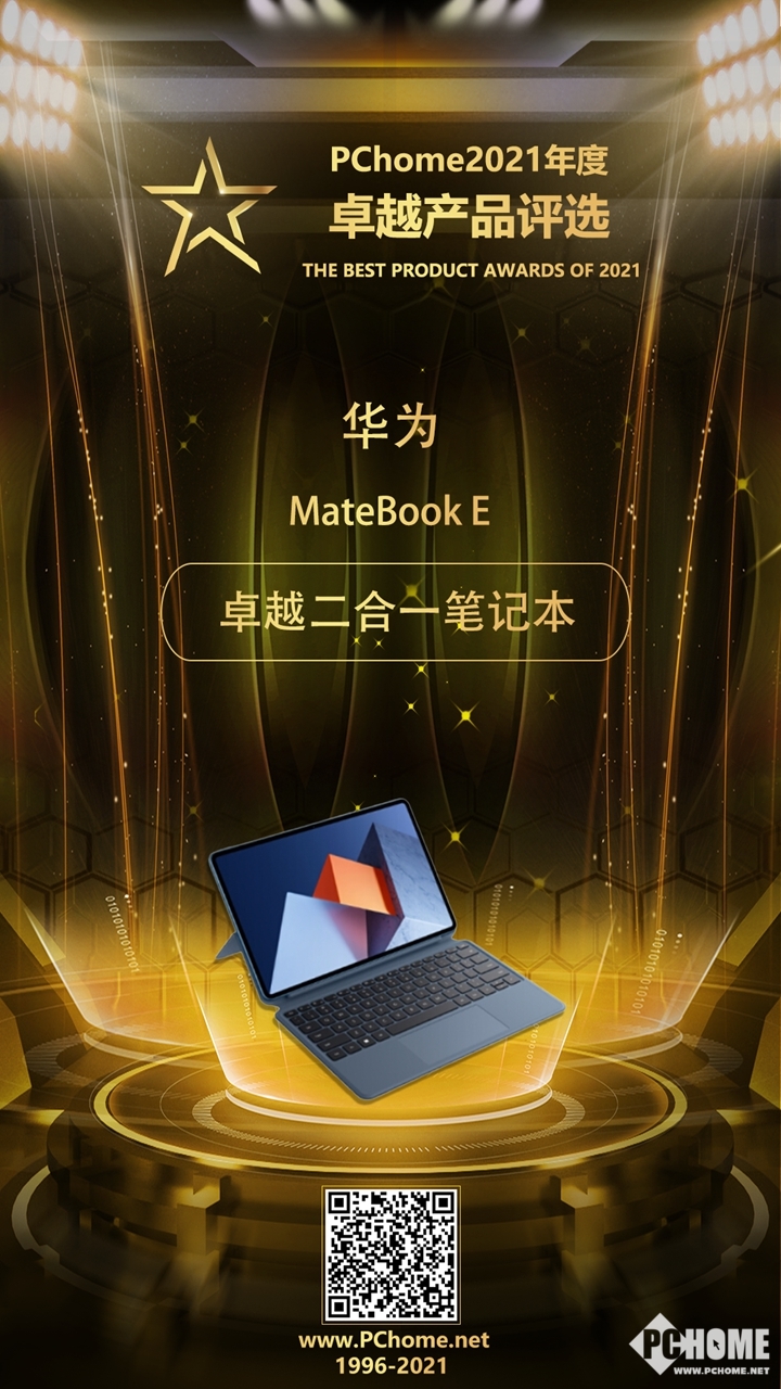 如今移动化、多场景已经成为现代化办公的主要发展趋势。而二合一笔记本拥有传统笔记本和平板电脑两种使用形态,深受众多职场精英的青睐。2021年11月,华为时隔两年再次对华为MateBook E进行更新,全新的华为MateBook E拥有极其出色的屏幕素质、极其精湛的外观设计、更加强劲的性能以及更加智慧的办公体验,在二合一笔记本市场难逢敌手。所以该产品在PChome 2021年底评奖中,获得了年度卓越二合一笔记本奖项。