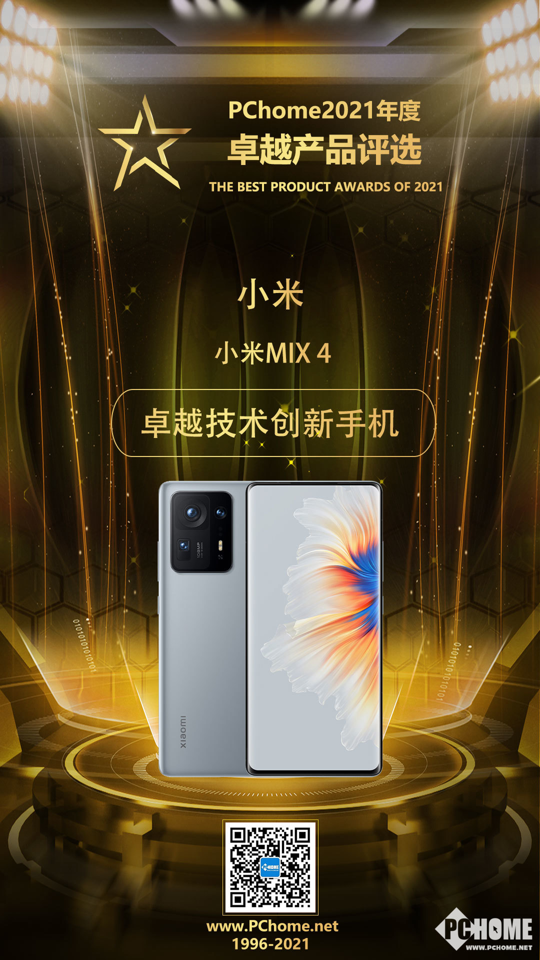 评选结果近期已经揭晓。其中,小米MIX 4荣获2021 PChome“卓越技术创新手机”奖。该奖项旨对2021年度发布的手机产品进行筛选,通过我们的专业深度评测、电商评价、第三方研究机构发布的产品满意度调查等,多个维度深度解剖,对参评产品进行的真实评价。