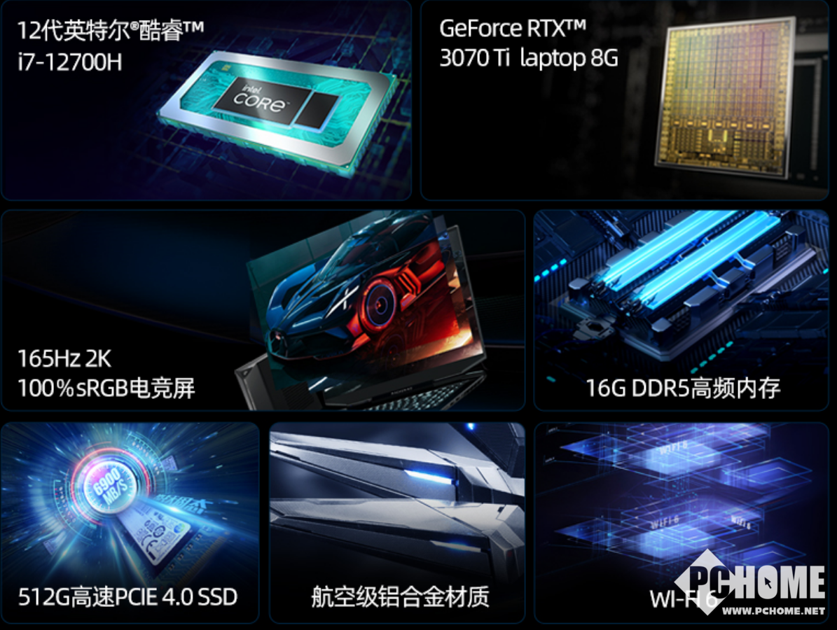作为一款面向高阶玩家的电竞本,硬件配置自然不能拉跨。机械师星辰17水冷版搭载了第12代英特尔酷睿i7-12700H处理器,采用6颗性能核心+8颗能效核心的组合,单核睿频频率最高可达4.7GHz,有着出色的性能表现,大小核设计平衡性能与能耗,带来全新的创作与游戏体验。同时搭配双通道DDR5-4800Mhz内存与PCIE 4.0 SSD,为整机带来极速响应。显卡方面则搭载全新NVIDIA Ampere架构GeForce RTX 3070Ti,集成第2代RT Core,可实现更为逼真的实时光线追踪效果,轻松征服主流游戏大作。