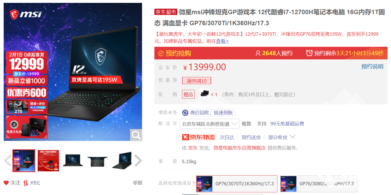 最后一款新品游戏本来自微星。这款命名为冲锋坦克Pro GP系列的产品,也是微星旗下的热门系列游戏本,此次随着英特尔12代酷睿的更新也同步换装,最高搭载12代酷睿i7-12700H处理器与GeForce RTX3080显卡的强悍性能组合,在微星超增压模式下,CPU+GPU的最高功耗可以达到195W,堪称性能怪兽。