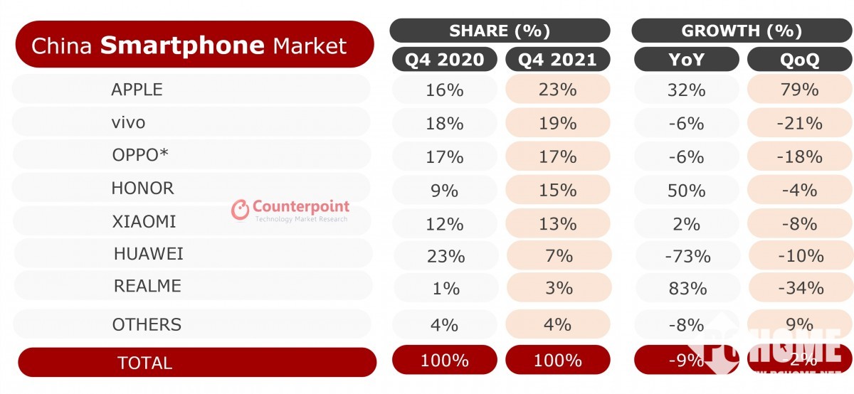 在Q4季度的市场份额数据出炉后,可能也是加剧小米股价下跌的原因。小米在国内市场的出货量为13%,市场份额只排在第五,华为留下的大面积空白并没有被小米吃下,甚至小米还落后于重新起航的荣耀。