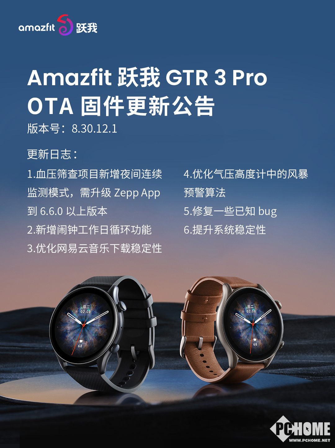 1月28日,华米科技旗下Amazfit跃我GTR 3>S 3系列进行新一轮OTA推送,其中Amazfit跃我GTR 3 Pro正式上线夜间连续血压监测功能(Zepp App需升级至6.6.0以上版本)。