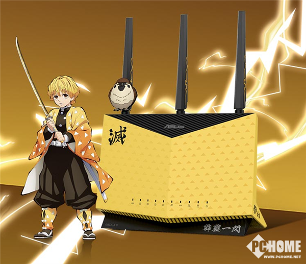 华硕RT-AX86U路由器推出了与动漫《鬼灭之刃》的联名款,与《鬼灭之刃》中的我妻善逸进行了联名,采用黄色与黑色相间的颜色设计。