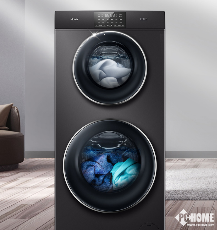 海尔13kg双滚筒洗衣机可以上筒洗内衣,下筒洗外衣,用户无需再单独手洗;也可以将蓝色牛仔裤和白色衬衫分区同步洗护,防止串色。