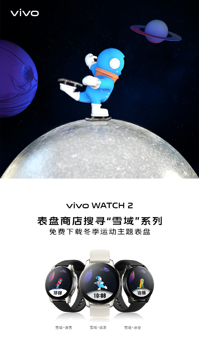 日前消息,vivo智能终端宣布vivo WATCH 2智能手表“冬季运动主题表盘”已上线,用户在表盘商店搜寻“雪域”即可解锁花滑、滑雪和冰壶三款表盘。