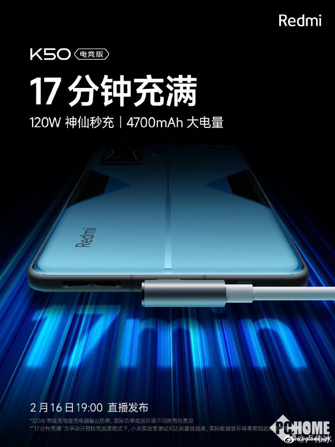 根据小米官方消息,Redmi K50 电竞版将在2月16日晚上19点发布。根据网络上的消息来看,作为Redmi的旗舰产品,Redmi K50 电竞版将采用120W神仙秒充 + 4700mAh电池,充满电仅需17分钟。