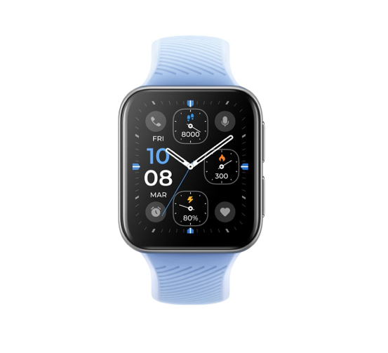 根据OPPO Watch 2系列官方页面我们看到冰川湖蓝配色仅在42mm eSIM版本中配置,与其他配色版本不同的是,冰川湖蓝配色在表带和表盘界面上都有不同程度的改动。首先是表带虽然依旧采用的是硅胶表带,但表面采用了斜向纹理设计,看起来更加清爽,同时斜向的纹理也将使得硅胶材质更加柔软,可以更好地贴合手腕。而在表盘上则在四个刻度点进行了同样配色的标记,且表盘样式也经过了重新设计,各个模块之间的展示空间更大,功能更加丰富。